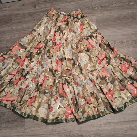 Myydään tummansininen asukokonaisuus, jossa pusero (selän leveys kainalon alta n. 50 cm, takapituus n. 61 cm) ja kuminauhavyötäröinen hame (smokkipoimutus, vyötärönympärys venyttämättä n. 58 cm, pituus n. 77 cm), kummassakaan ei vuoria. Voin postittaa.