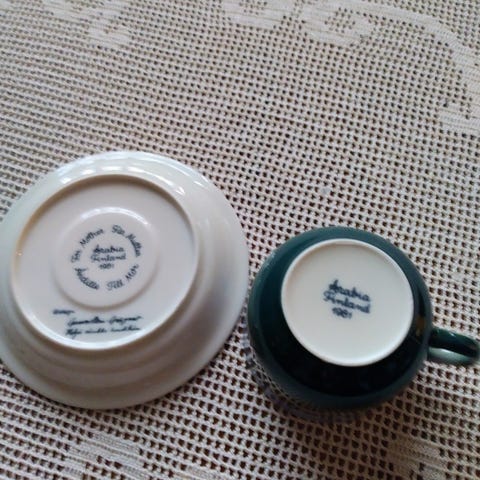 Heljä Liukko-Sundström äitienpäivä kahvikuppi vuodelta 1977. Ostettu uutena jemmaan,mutta jäänyt käyttämättä. Nouto tai postitus.