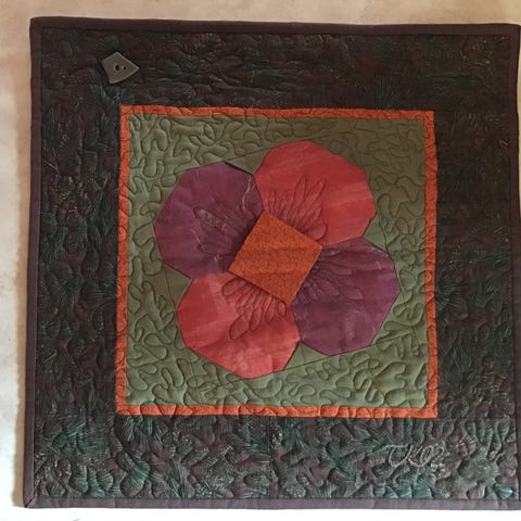 Punatulkku -seinätyö, kuviot ristipistoin tehty, kotimaista käsityötä.