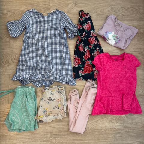 Ciraf -merkin hihattomat paidat ja hieman pidemmän malliset shortsit. Toisissa kokomerkintä 110, toisissa 116 (vastaa enemmän 116 kaikki). Ehjiä ja juuri pestyjä, värit toki uudesta haalistuneet ja pesuhaitua etenkin lilassa asussa. Postitus onnistuu.