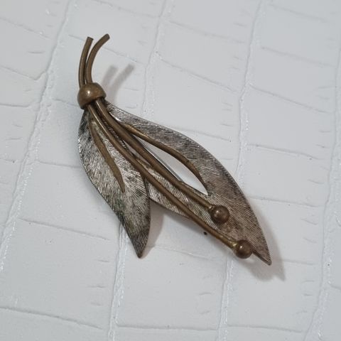Kullanväristä metallia, helmiäislehdykät, keskellä helmi, 6x3,5cm, lähetys kirjemaksulla