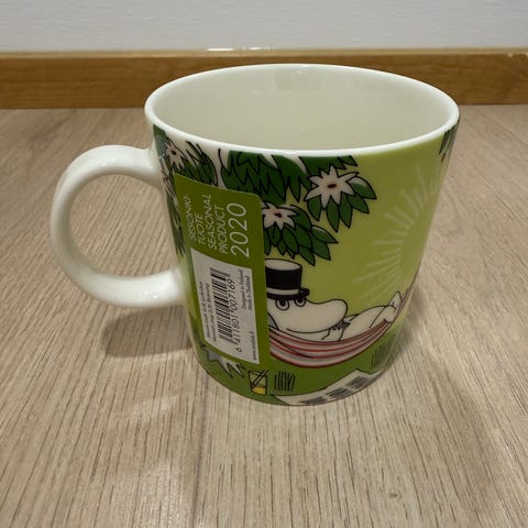 Myydään kesän 2020 sesonkimuki, muumimuki Loikoilua, Arabia. Uusi, käyttämätön, tarrallinen, kunto erinomainen.
