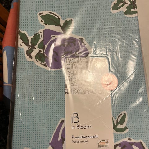 Kaksi pussilakanasettiä 150x210 + 50x50, kaksi alulakanaa 180x270, kaksi tyynyliinaa 55x65