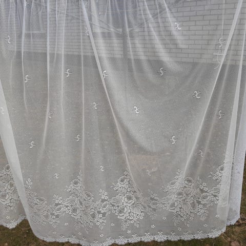 valkoinen pisiverho 100% polyesteriä verhon alaosassa halkio erikoinen kaunis