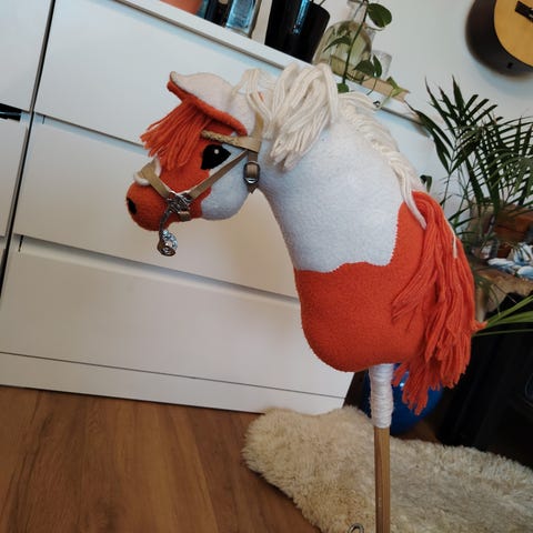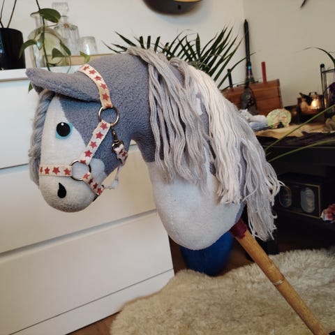 A4-kokoinen suuton keppihevonen, mukaan tulee harmaat suitset ja martingaali. Tekijä Instassa @riot.horses. Myydään ilman täytteitä, ponilla on tiedot.