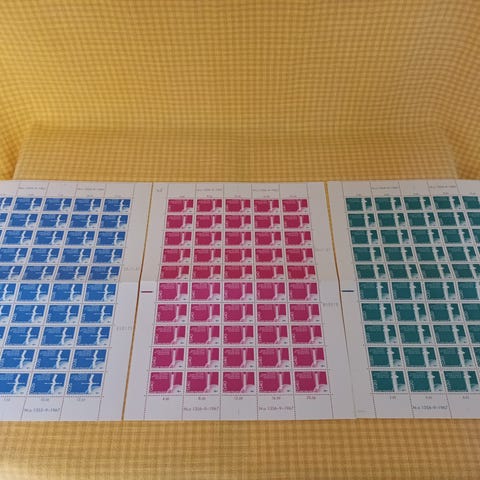 Myydään 30kpl postimerkki arkki, 1951, XV, Olympia, 1952, 12+2mk, keskeltä taitettu,