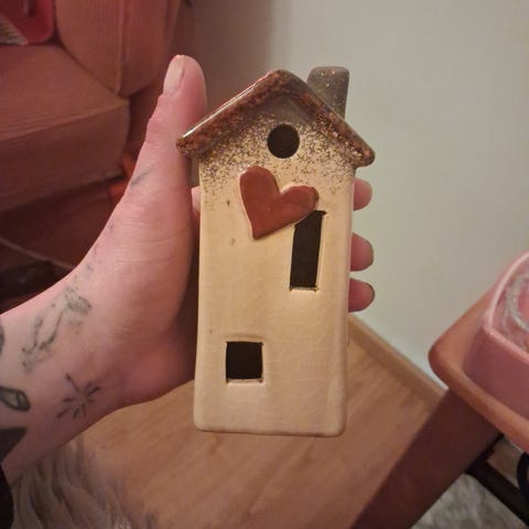 Myydään metallikehysteinen koristetalo, jossa puulattia.
