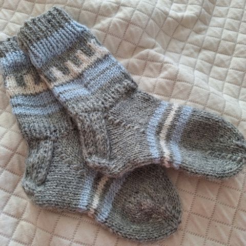Myydään käsityönä tehdyt lasten villasukat. Koko 21-22. Väri turkoosi. Jalkaosan kokonaispituus 13,5cm. Varren korkeus 21,5cm.