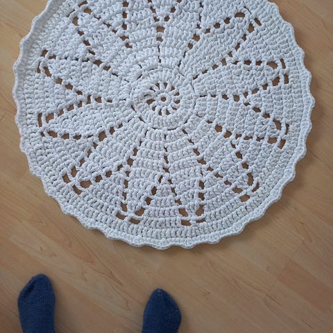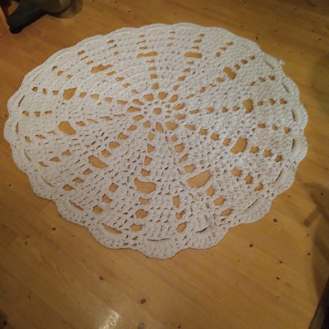 Uusi musta/punertava virkattu ontelokudematto, halkaisija 77cm.