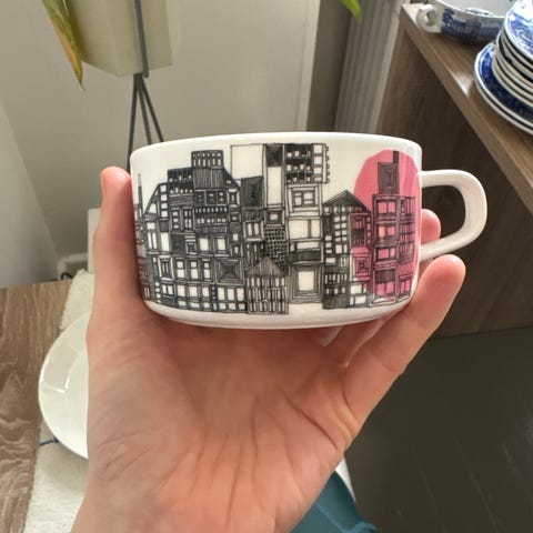 Asiasanat: Marimekko Oiva Siirtolapuutarha Räsymatto teekuppi kahvikuppi jälkiruokakulho suomalainen keramiikka