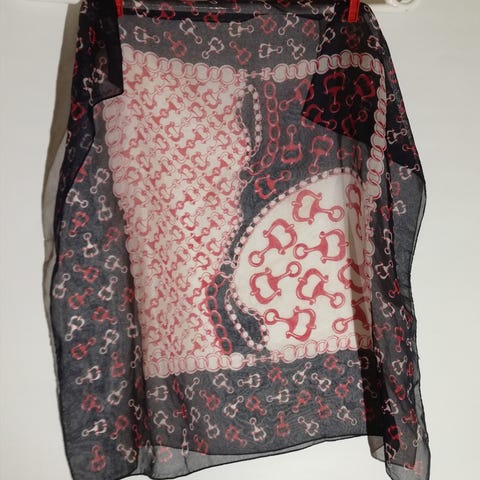 Punertava huivi koko noin 77 x 77 cm.