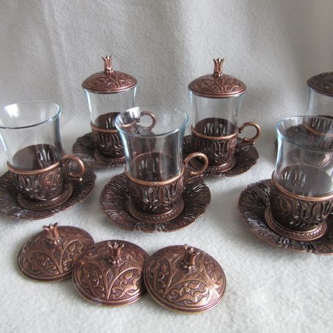 Käyttämättömät arabialaiset teelasit korkeus 9 cm, leveys 5 cm. Setti 5.