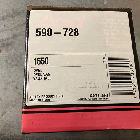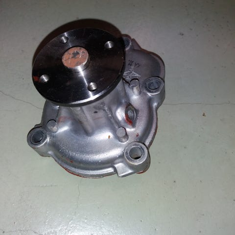 Isuzun Opeleissa käytetyn 1.7TD-moottorin uusi vesipumppu. Näitä on kahta erilaista ilman selkeää vuosimallirajaa eli tässä mallissa laipan pulttikehän halkaisija on 58mm.