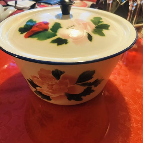 Myyn kauniin Emali astian . Voi käyttää esim. piirakkavuokana, hedelmäastiana ym.