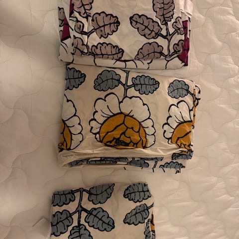 Tästä saa hyvin vaikka pienen pöytäliinan, sisustustyynyjä tai vaikka verhot. Toki myös pienennettynä esim. lapsen lakanoiksi.