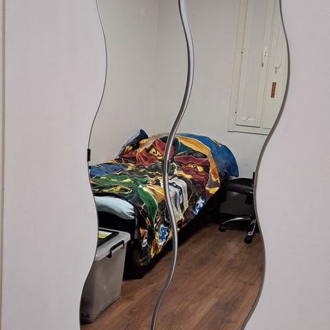 Koostuu 4kpl: sta. Yhden kpl koko L79 cm K39.5 cm. Koko peili koko 79× 158cm jos käytät kaikkia paloja. Kiinnikkeet mukaan. Vain Nouto.