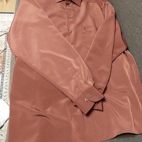 On ns rypistymätöntä kankaasta. Rento mutta siisti ja tyylikäs. Hieno paita, mutta olen todennut että siniset paidat jostain syystä jäävät minun käytössäni olemattomiin.