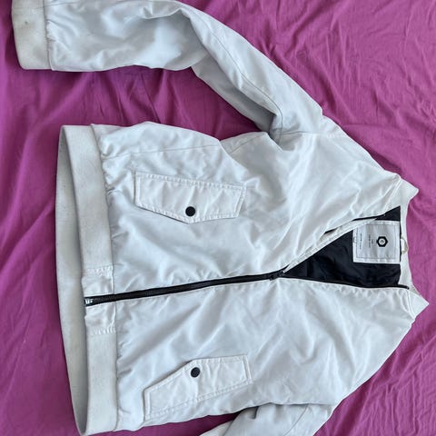 Nuorten kevyt hupullinen takki jota ei kertaakaan käytetty. Väri valkoinen- beige- tummansininen.