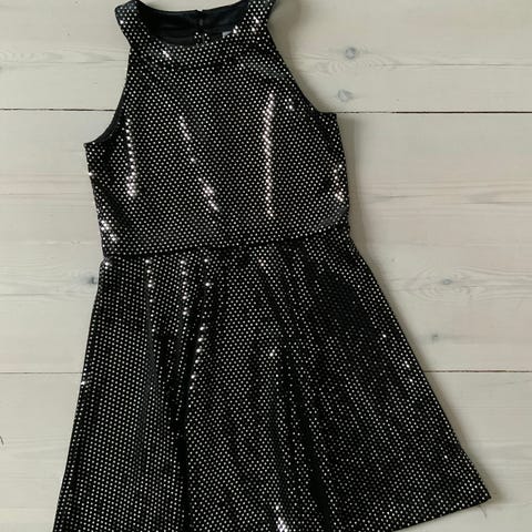 Kerran pidetty juhlamekko koko 10-12, vastannee kokoa 134-150. Helmassa tyllialushame.