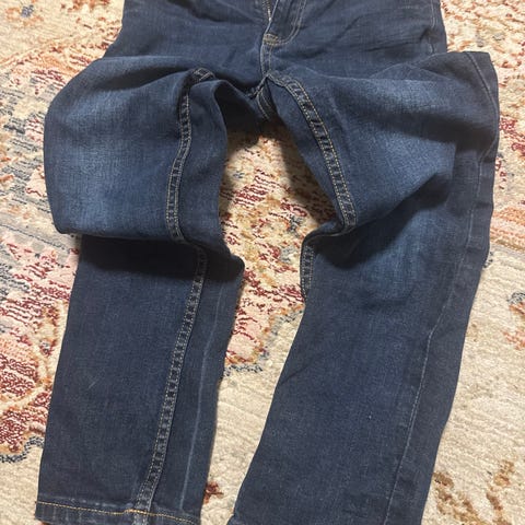 Polarn o pyret farkut jäykempää farkkukangasta. Koko 122. Siistit, kulumaa vain takasauman paksuimmassa kohdassa. 5e.