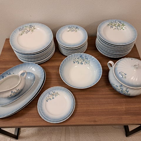 Christineholm Porcelaine, Apilanlehtiastiat; 7x kahvikuppi/aluslautanen/asetti, tarjoiluvati ja kahvikannu (korkeus ilman kantta 19,5cm).