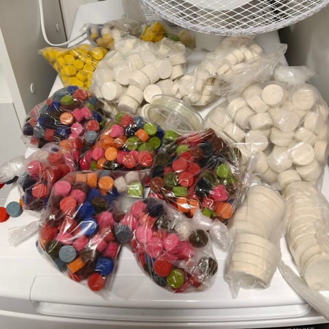 Värikkäiden huopamakeisten halkaisija n 4 cm, tästä seuraava käsityöprojekti
