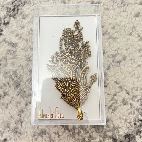 Kalevalakorun Uhtuan sotka rintakoru, koko 50x95mm, tulee tarvittaessa Kajaaniin, Ouluun , (Iisalmeen viiveellä), 48€, postitus onnistuu, pk ostajalle
