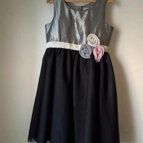 Myydään ihana juhlamekko kesän juhliin. 128cm. Hieman tummentumaa tuossa sametti raidassaa vyötäröllä