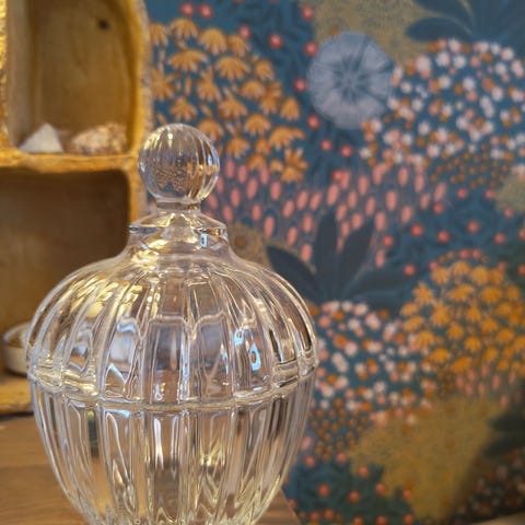Myydään Pentikin lasikansi. Halkaisija 20 cm.