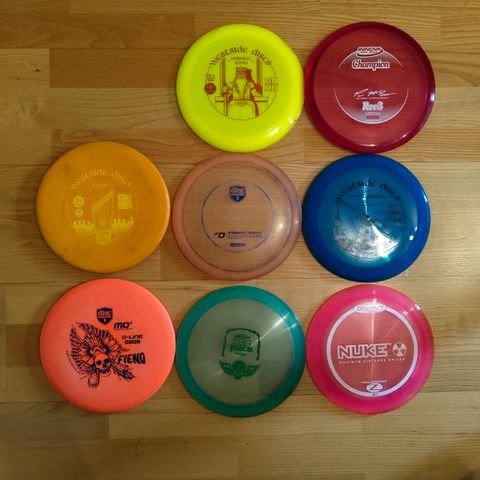 Tässä olisi myytävänä melko uusia frisbeegolf kiekkoja. Melkein kaikissa pienet tussit, mutta saa poistettua. Osa kiekoista on kuluneempia ja osa melkein juuri ostettuja.