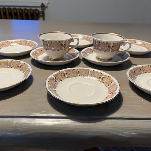 Valkoiset kahvikupit. Arabialla ollut tuotannossa 1980-1990 luvulla, alkuperäinen malli on 1930 luvulta. Kahvikupit ja aluslautaset 6 kpl, käyttämättömiä. Alkuperäinen myyntipaketti. Edulliseen yhteishintaan. Nouto. Käteinen.