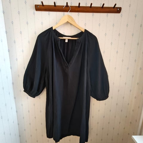 Musta tunika, jossa keltaiset kukat. Kukissa myös punaista ja ruskeaa.