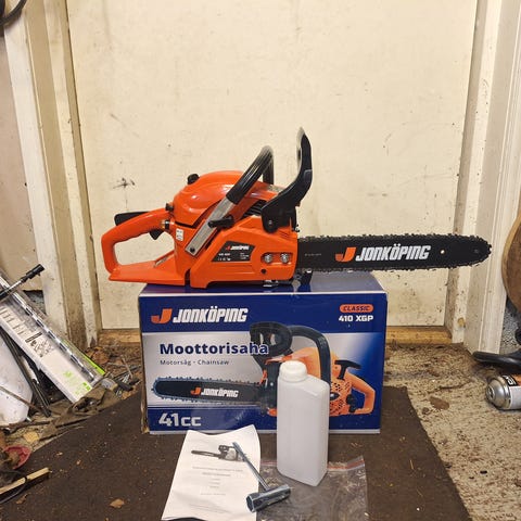 jönköpinki polttomoottorisaha, jossa 18 tuuman terä. Käytetty saha, joka soveltuu puiden kaatoon ja pilkkomiseen. Oranssi väri ja näkyvissä käyttöjälkiä. voin lähettääkin mutta en tori diililä kun rahan saanti kestää viikon