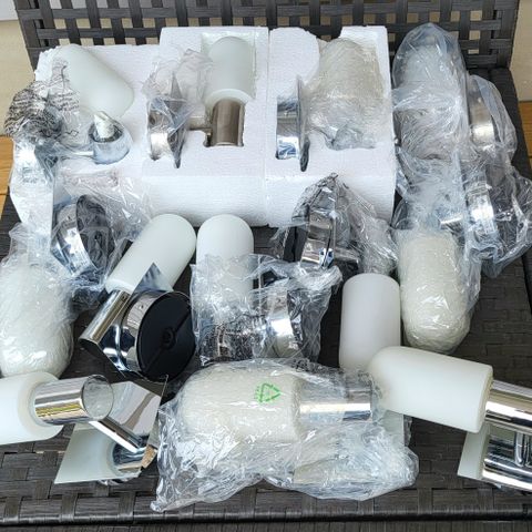 6 kpl rst-runkoisia seinävalaisia Airam GU10 4W K4000 polttimolla. Polttimon suojana on opaali lasikupu. Polttimot ollut käytössä vain n. kuukauden ajan. Toimivat valaisimet poistettiin käytöstä remontin yhteydessä. Myydään edullisesti pakettihintaan 40€ tai kappaleittain 10€/kpl. Soita tai watsapilla 0400-755511.