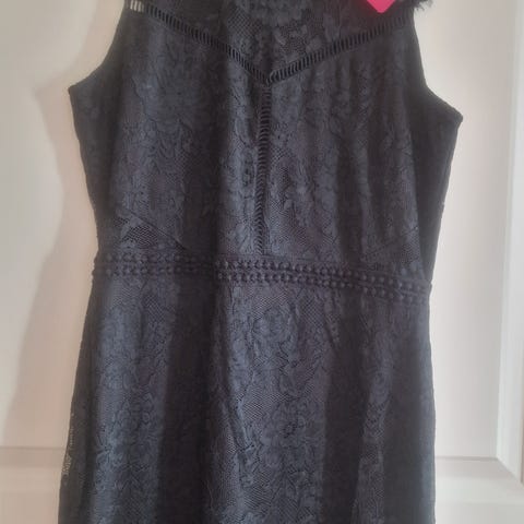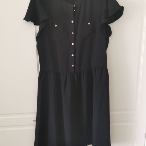 Kuvanmukainen musta mekko, jossa niittikoristelu vyötäröllä.