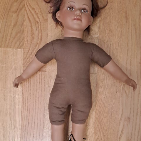 Vanha nukke ja nuken oma kantokoppa. Sekä nukke että kantokoppa hyvässä kunnossa. Mukana myös tyyny.