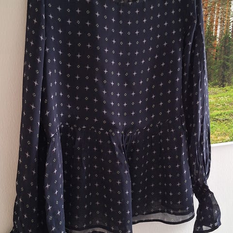 Myydään hyväkuntoinen Mango-merkin pusero. Hihat 3/4. Sivuhalkiot. Niskassa vetoketju, edessä koristetasku. Kauniisti laskeutuva. Pesulappu leikattu pois. Koko L. Väri musta. Hintaan tulee postikulut päälle.