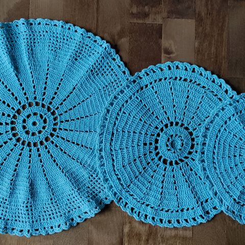 Käsinvirkattuja pitsiliinoja, eri kokoja, halk. 21-27 cm,
