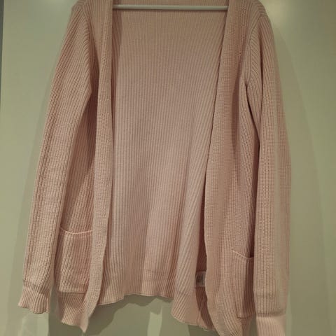 Todella vähällä käytöllä ollut neuletakki. Uudenveroinen. Pinkki / tummansiniset raidat.