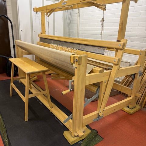 Hyvät kangaspuut. Tekee vissiin 100cm mattoa.