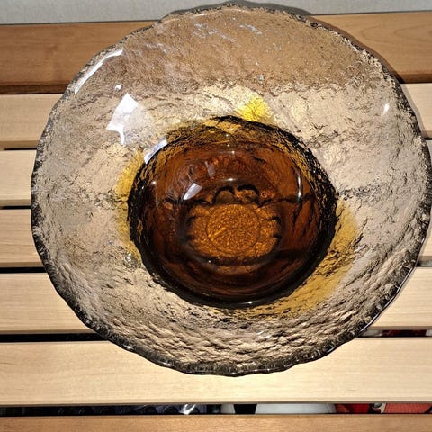 Upea retro Humppilan Kivi-Set lasikulho. Design Pertti Santalahti, 70-luku. Halkaisija 24cm, korkeus 11cm.