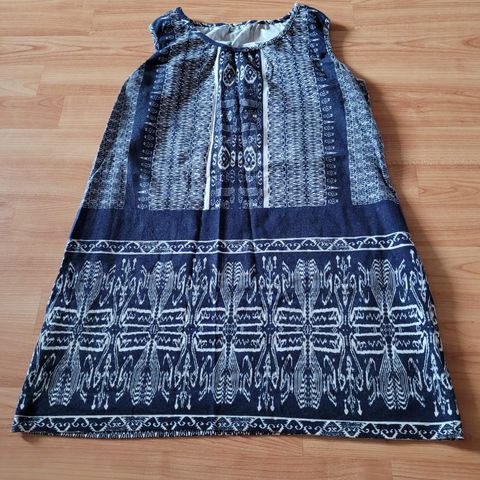 Pari kertaa pidetty napillinen toppi. Tummansininen, valkoiset raidat. 95 % puuvillaa, 5% elastaania.