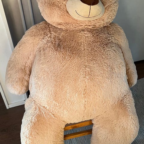 Iso valkoinen ihanan pehmeä nalle. Muuten tosi hyvässä kunnossa ja pysynyt pehmeänä mutta säilytyksessä kuonoon tullut jotain vihreää. Lähtee luultavasti ihan pesussa pois.