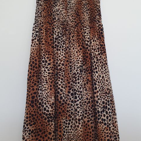 Myytävänä uusi käyttämätön naisten leopardi kuvioinen haame. Vartaloa kauniisti imarteleva joustava kuminauhapoimutus ylhäällä. Pituus 80 cm. Koko S-M. Savuton ja eläimetön koti. Nouto tai postitus.