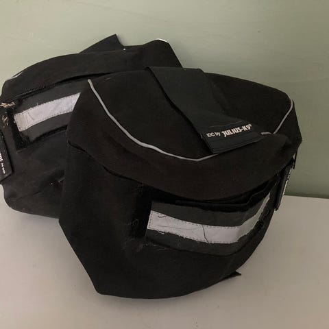 Julius K-9 uudet mustat laukut tarrakiinnityksellä valjaisiin.