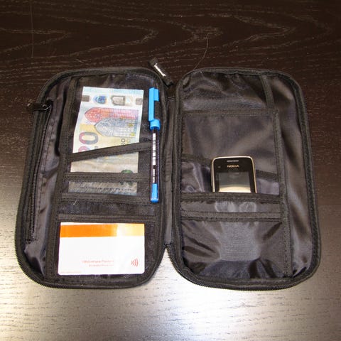 Matkalompakko. Mustaa tekonahkaa. Uusi. Sisälle mahtuu 3 korttia, passi, käteistä, kynä ja 2 sim-korttia. Kulkeutuu menojen mukaan vaikkapa Tiiriöön, Lammille tjps ja Voin postittaa.