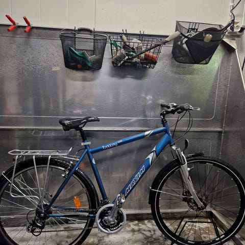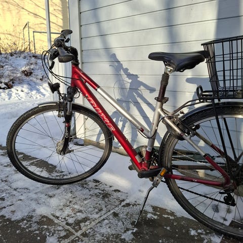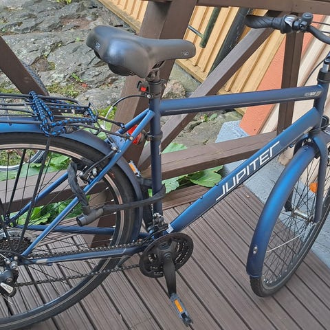 Jupiter Highway -merkkinen. Vaihteita tästä vauhtihirmusta löytyy 21 ja tuumakoko on aikuiselle miehelle juuri sopiva eli 28". Lisävarusteina löytyy: peili, juomapulloteline, kulmalaukku ja runkolukko 2:lla avaimella. Mukana tulee myös nopeusmittari monipuolisilla ominaisuuksilla: max nopeus, keskinopeus, kuljettu matka, kello jne. Tarakalle kun laittaa sivulaukut niin mukana menee suurempikin määrä tavaraa. Ladattava takavalo.
