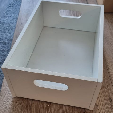 Ikea merkkinen metallinen säilytyslaatikko kannella.