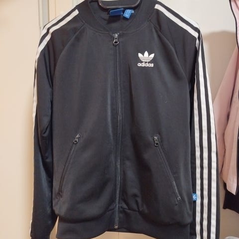 Myydään pari kertaa päällä ollut Adidaksen musta verkkatakki. Sivuilla taskut, korkea kaulus.