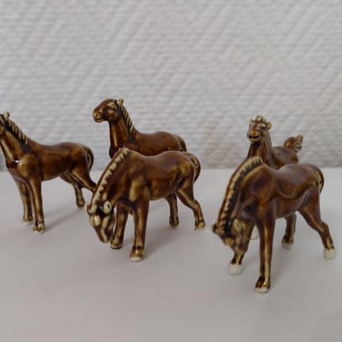 Kolme pientä metallista hevosfiguuria pituus n. 4 cm. Koristeena säihkyvät strassit.